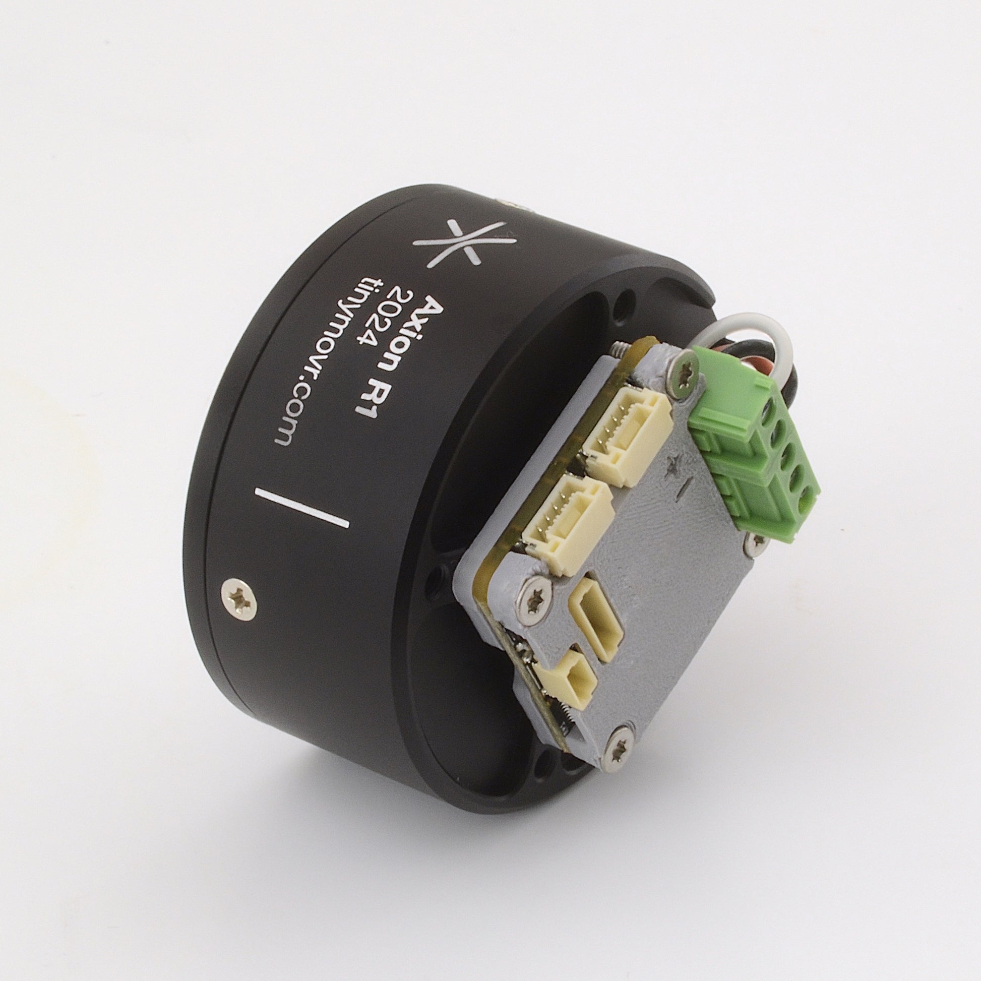 Axion is our new actuator for light robotic joints, combining a Tinymovr M5 with a GIM4305 motor and 10:1 reducer combo. Axion has everything you need to build a robotic joint. The actuator is lightweight offering a high torque density of 20Nm/kg and high torque transparency.